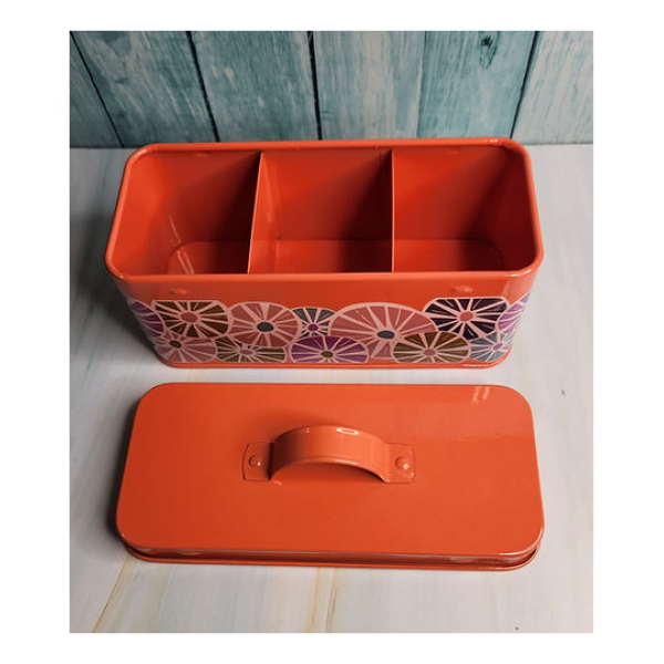Cajita enlozada con 3 compartimientos para té en bolsas